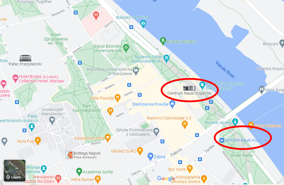 The Copernicus Science Center is easily accessible by public transport, especially metro line No.2 . The closest station is "Centrum Nauki Kopernik".